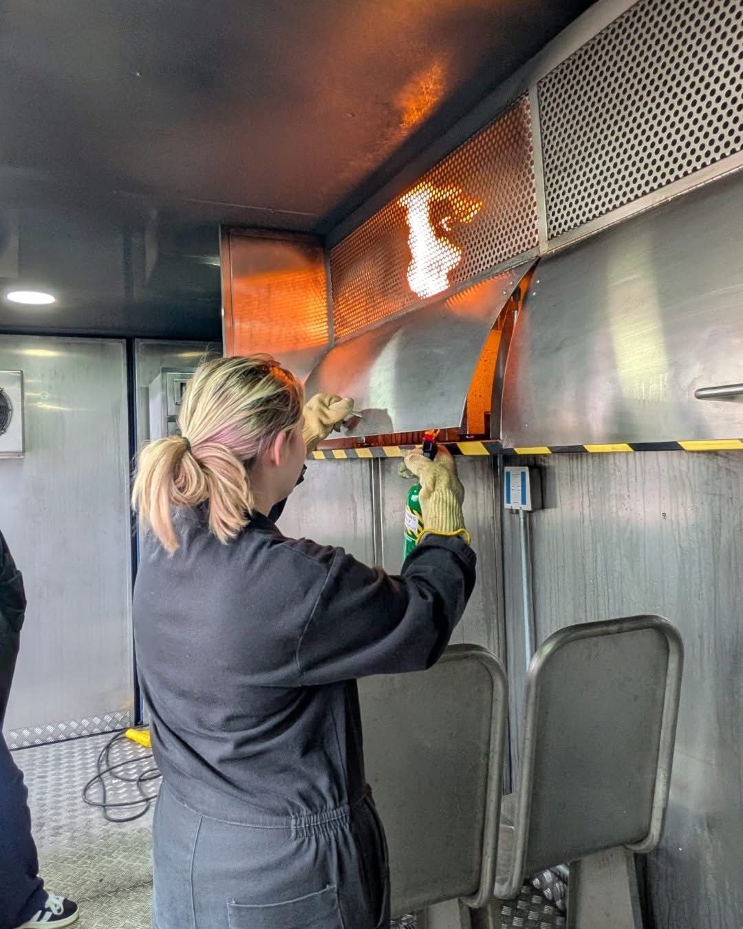 Purpose-built fire rig for realistic firefighting training, enabling crew to develop confidence in handling in-flight fire emergencies.