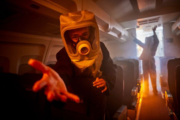 Full-scale CEET with decompression system, communications system, fire and smoke simulation for realistic emergency scenario training.
